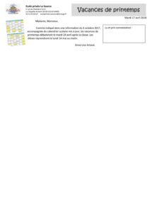 RAPPEL vacances de printemps…
